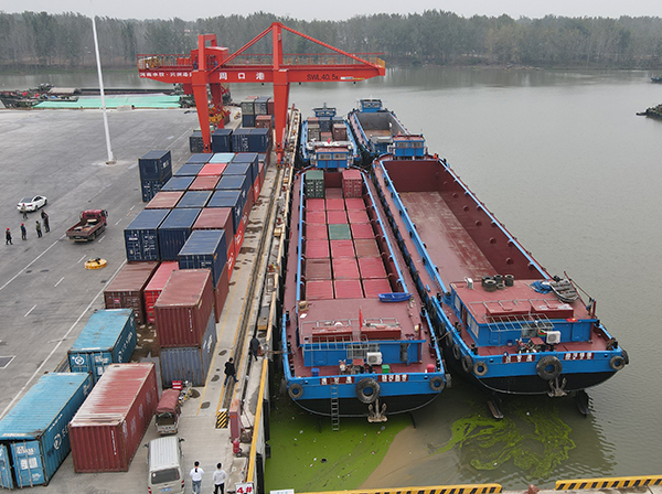 9月25日上午,周口中心港至鹽城港、上海港集裝箱航線正